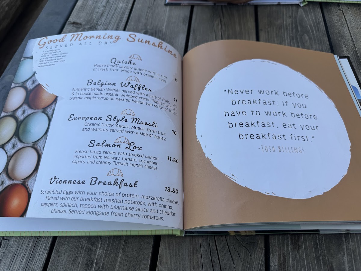 Crisp organic spinach, elegantly paired with tender roasted beets, ripe pears, and crunchy pecans. Savory chopped bacon and a decadent Cabernet Sauvignon Bellavitano cheese crumble add rich, flavorful notes. All of this is drizzled with a tangy balsamic dressing and served alongside a slice of fresh bread, making for a satisfying and sophisticated meal.